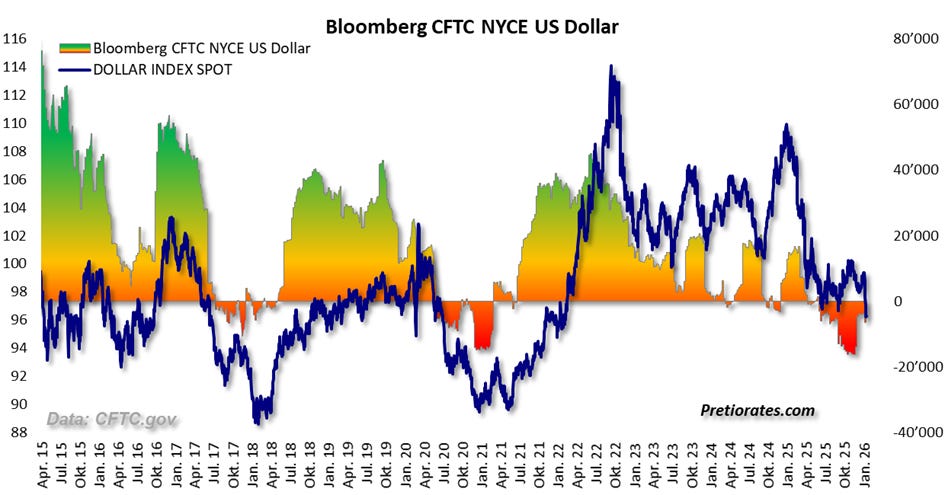 The extremely negative market sentiment toward the US Dollar is also clearly noticeable and visible in the futures market. Professional investors, known as «non-commercials», as recorded by the CFTC, were recently net short. However, a look at history shows that whenever this group was net short, an impressive Dollar rally usually followed in the subsequent quarters.