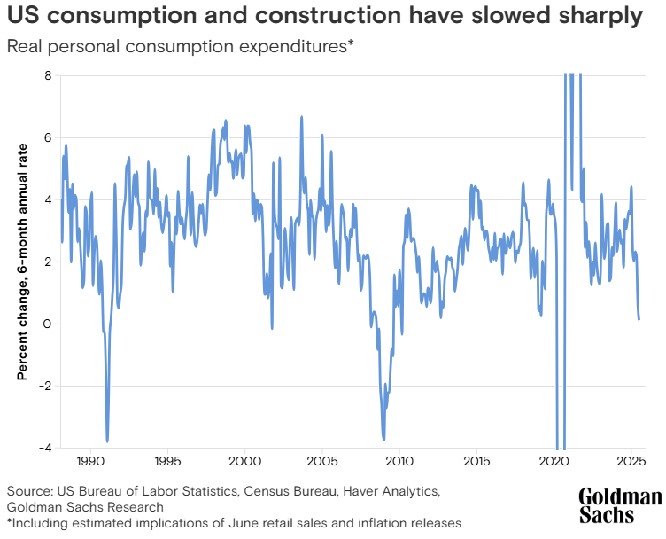 The real sleeper risk, however, may be inflation—again. Hatzius notes that while tariffs have yet to fully work their way into headline prices, the expectation is that core inflation could re-accelerate by about a percentage point, pushing above 3%. That would put the Fed in a tricky bind: faced with tepid growth but sticky inflation—hardly a recipe for a smooth policy path. In his words, “it’s going to continue to be a slog.”