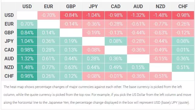 The table below shows the percentage change of US Dollar (USD) against listed major currencies today. US Dollar was the strongest against the Euro.