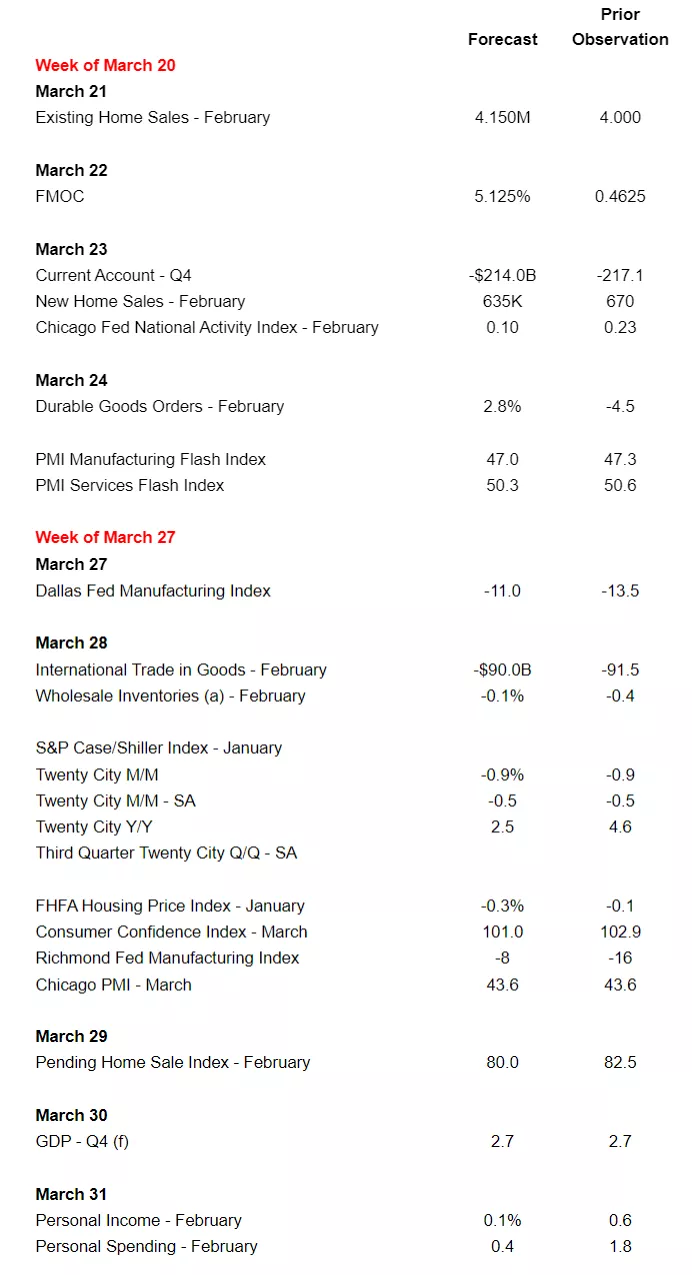Economic Data Forecasts For The Weeks Of March 20 And 27