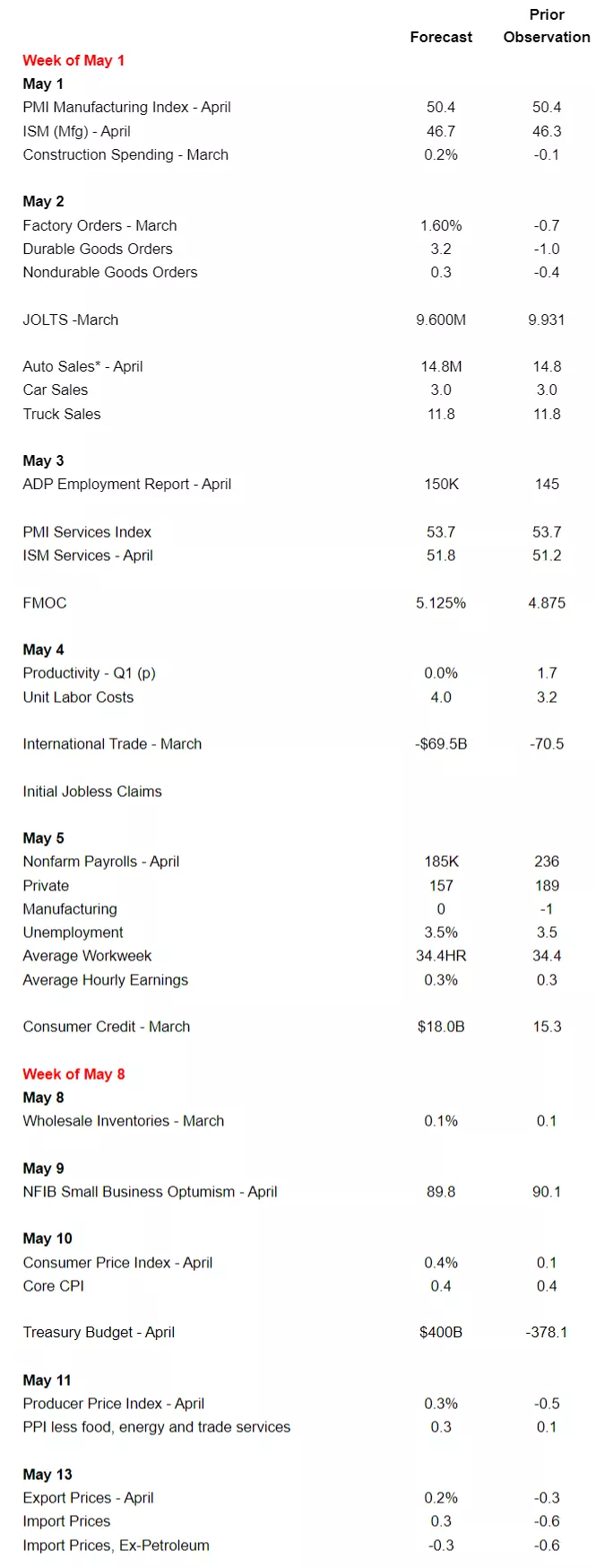 Economic Data Forecasts For The Weeks Of May 1 And 8