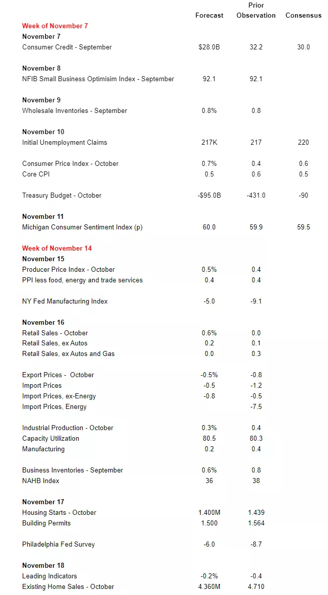 Economic Data Forecasts For The Weeks Of Nov. 7 And 14