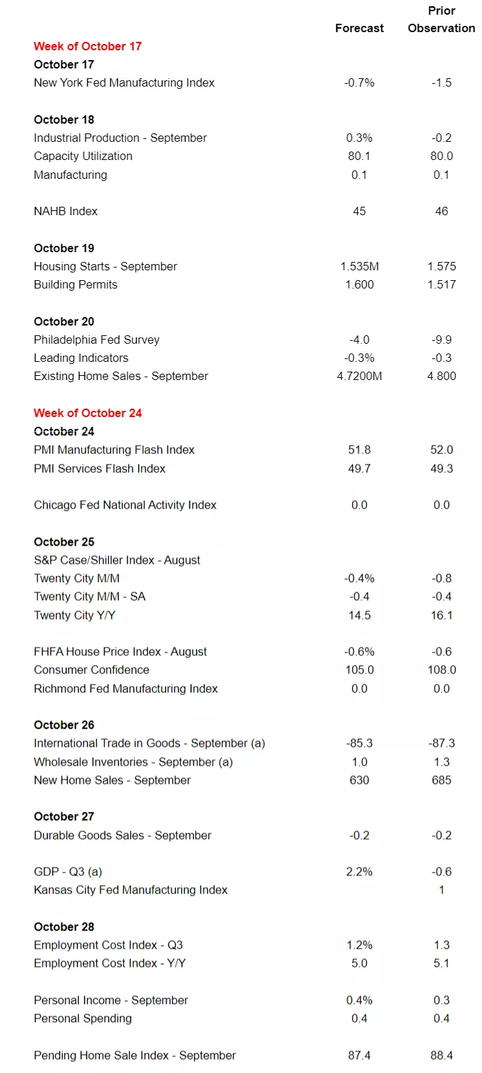 Economic Data Forecasts For The Weeks Of Oct. 17 And 24