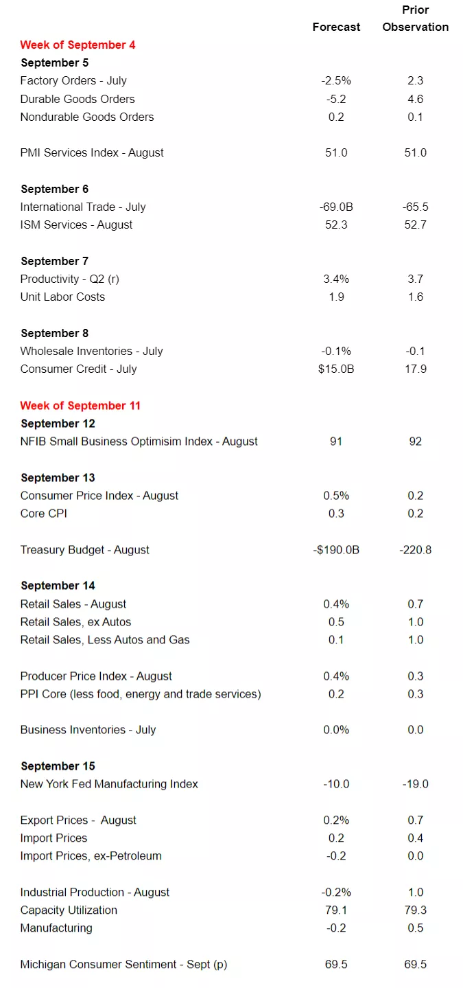 Economic Data Forecasts For The Weeks Of Sept. 4 And 11