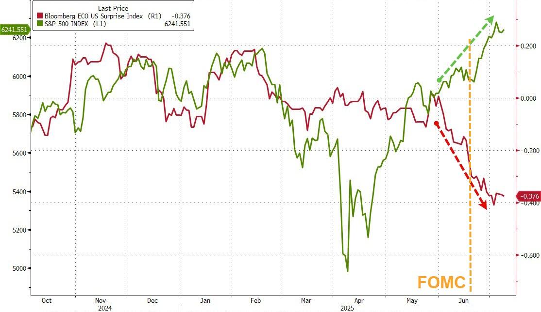 Stocks have melted up since the FOMC meeting (even as macro has weakened - bad news is good news)...