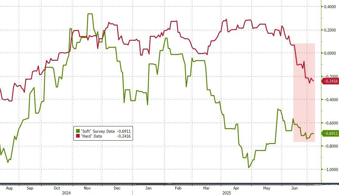And both 'hard' and 'soft' data has weakened relative to expectations since the last FOMC...
