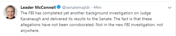 Arising from that hearing (and the 11-10 Committee vote in favour of advancing the nomination to the full Senate) was the Committee request for the FBI to conduct supplemental enquiries to the Senate investigations that have already been conducted on this and relevant matters.