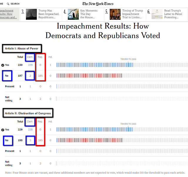 - 2 Democrats voted "NO" on one Article and 3 Democrats voted "NO" on the other Article.