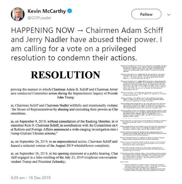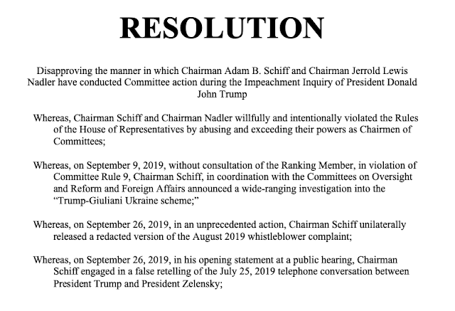 GOP House Leader McCarthy's Resolution on Democrat Congressional abuse of power...