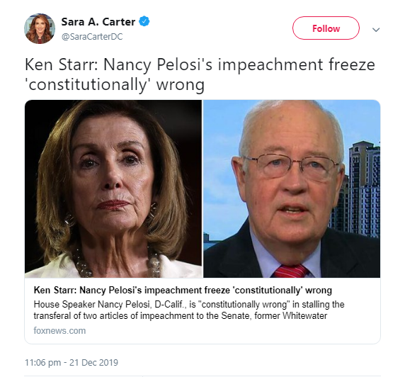 Watch this explosive interview today by Fox News Mark Levin of former Circuit Judge, Solicitor General, and Independent Counsel Ken Starr regarding the House Democrats' impeachment process of President Trump.