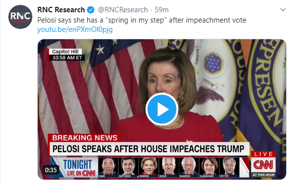 Congratulations, Nancy, you've torn the country apart on baseless and false accusations for purely political gains and weakened it in the process. You've deemed, not only Trump as naughty, but his 63 million voters, as well. Hence, you've delivered them their lump of coal in time for Christmas, just as you promised before the impeachment inquiry and hearings ever began.