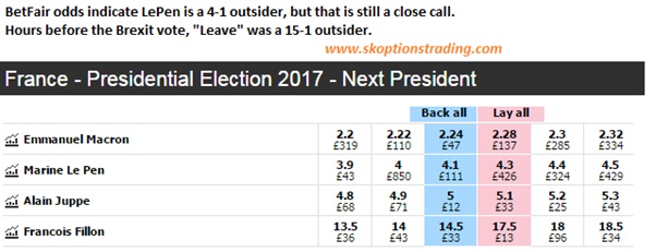 Polls still show a Le Pen victory as unlikely, but anybody putting too much weight on polls after their woeful predictions in the Brexit referendum and US presidential elections, is being incredibly naïve. We are largely ignoring the polling statistics. As far as we are concerned, we have a two horse race for the presidency and that means there is enough of a chance of a Le Pen victory to be concerned with, especially given the consequences.