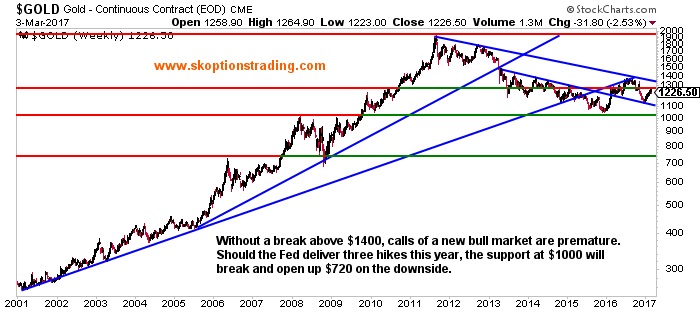 We are potentially at the very start of a large macro driven decline in gold prices. Multiple hikes from the Fed and potential unwind of the QE inflated Fed balance sheet down the road could see a multi-year bear market in gold. Looking years into the future is beyond our scope, but it is with high conviction that we express our view that multiple Fed hikes this year will drive gold prices to re-test the lows. A March hike should test $1125 and a follow up in June will question the $1050 support. If the Fed is still intent on further hikes, then $720 is not out of the question.