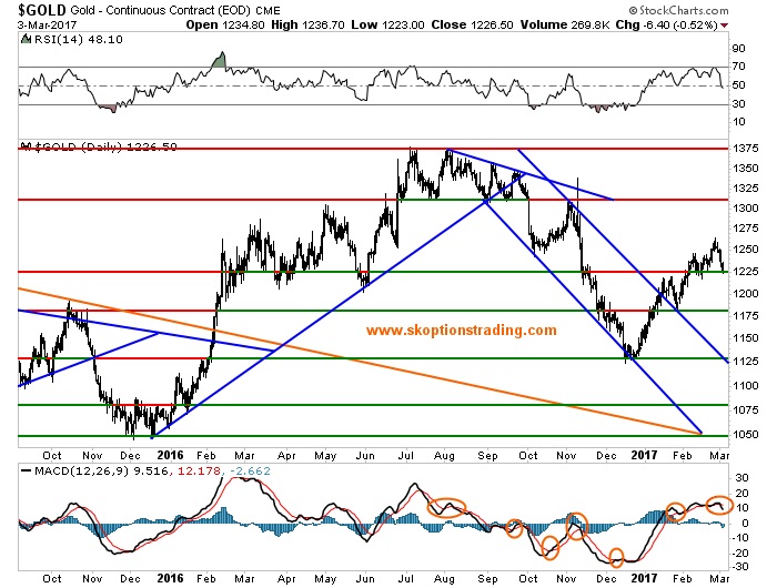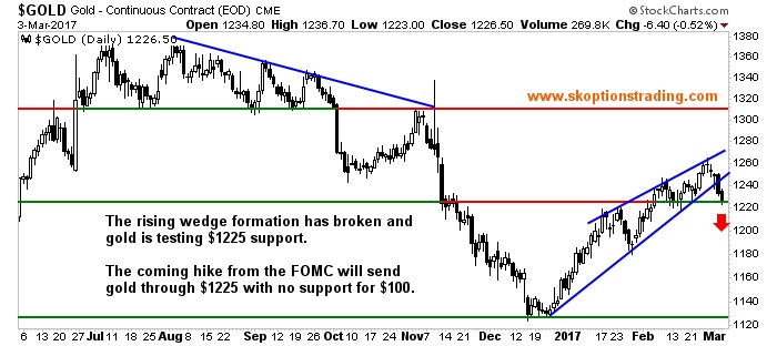 It has reacted enough to take the bullish momentum out of its sails though. Technically, gold has tested the $1225 support zone which we expect to break this week. The rising wedge formation so far this year has been broken, and gold looks primed for a $100 fall, with only minor support around $1185.