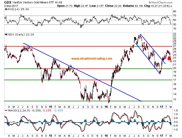 Whilst we could see a bounce in miners from here on a technical basis, it will be short lived. The trapped longs will be looking to sell into strength to lighten positions, as opposed to buying. We will be initiating short positions into a bounce and still hold the view that gold mining stocks could halve in 2017.