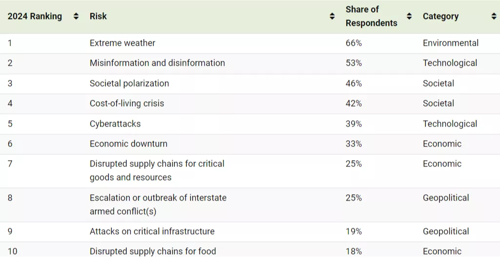 Source: The World Economic Forum’s Global Risks Report 2024.