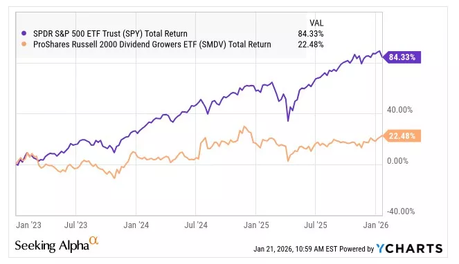 SMDV is a bit tougher for many. Not only is the ETF much smaller, it is focused on a different universe. I think that Small-Caps in general have underperformed Large-Caps for quite some time, though they have done well relatively very recently. But, SMDV is very different from the overall Small-Cap universe due to its focus on dividend growers.