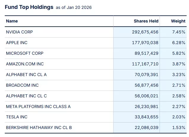 SPY has extreme concentration now, with the top 10 yesterday representing 37.8%. Here is the list: