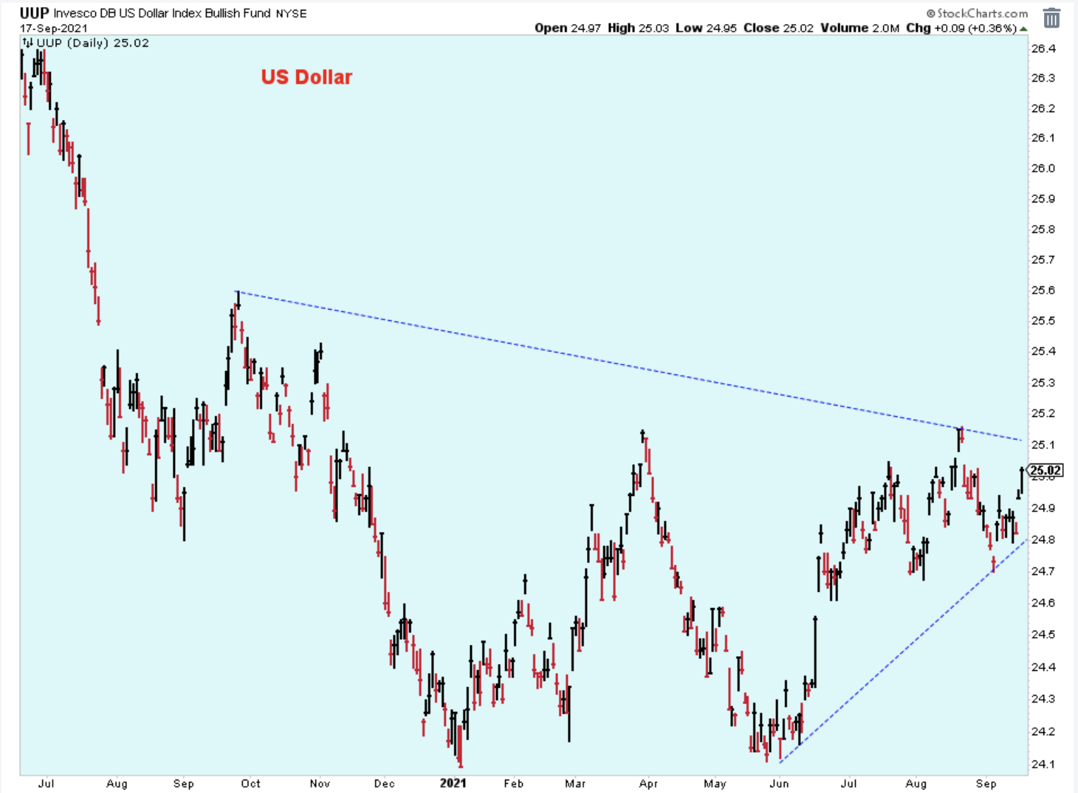 Here is a closer look using the daily chart. If this were the chart of a stock, I'd be getting ready to buy.
