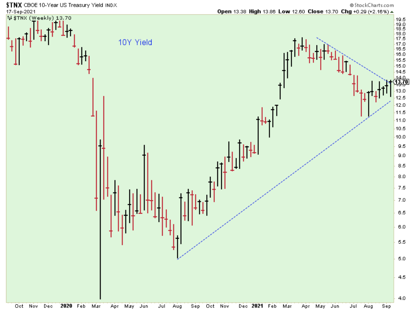 The direction of yields has been difficult to predict lately, similar to the US dollar. At the moment, the 10-year yield looks like it is headed higher again, but it has work to do before the trend is convincing.