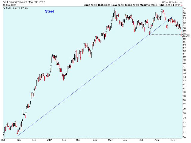 I heard on the news that some of the steel industry leaders commented on an improving outlook for steel products, but then I also heard that China reported slowing growth and that this would dampen demand for steel. Using the news to help trade has never worked for me, and this is one of the better examples of why. This is not the look of a chart in an industry that I would want to own.