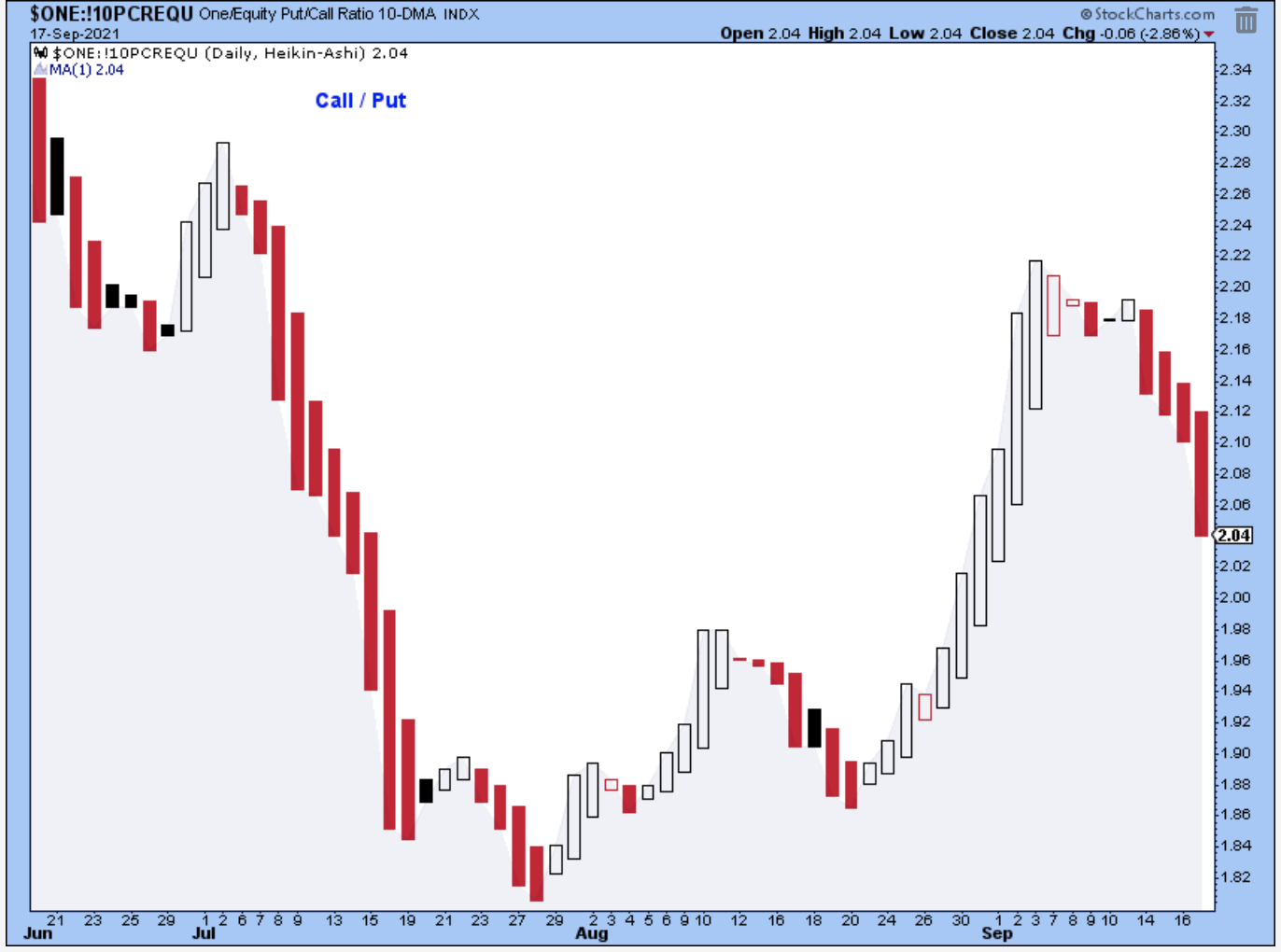 The 10-day Call/Put is certainly not suggesting a new uptrend. This indicator has been pointing decisively lower and it did head lower all week despite the promising price action on Wednesday and Thursday. Bearish.