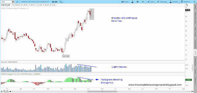 The next few weeks should go something like this. GDX attempts to rally a wee bit higher. But, anything higher is only to form a top. Then comes the selling.