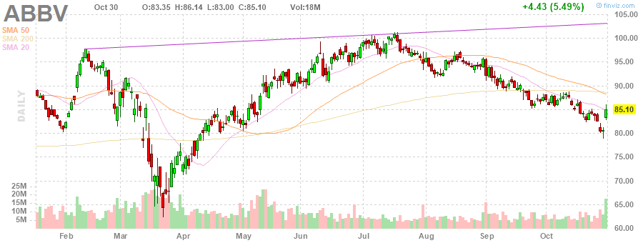 Abbvie (ABBV) was up 5.49% on Friday to the $85 level on a raised profit forecast, which was based on Q3 revenues of $12.3 billion. Look for cosmetic botox to increase up 8% with bets on a longer-term recovery. There is late stage pipeline opportunity for Skyrizi and Rinvoq. DIV 5.55%.