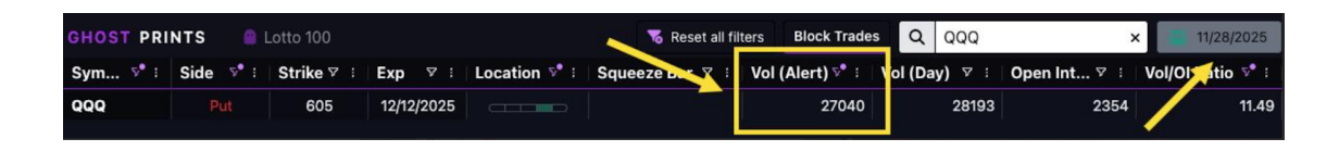 Here's what the Ghost Prints Console caught this week. QQQ: 27,000 put contracts traded in a single block. Someone rolled from $585 strikes to $605 strikes.