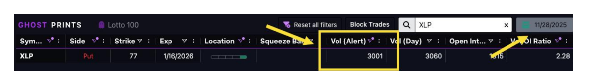 XLP (Consumer Staples): 3,000 put contracts hit the January $77 strike after the sector rallied 3% in a week.