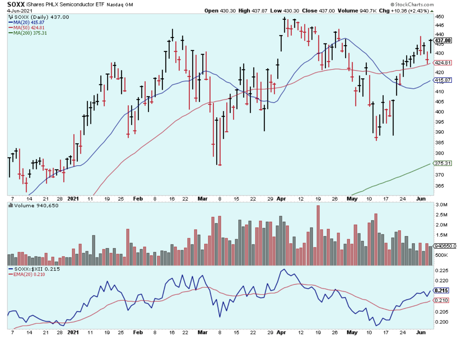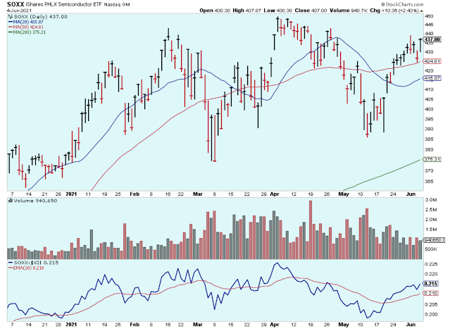 On the other hand, some good news is that leadership might be returning to the semiconductors. This is not the greatest looking chart of an index, but the leading stocks in this group look bullish.