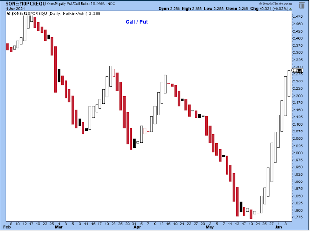 I think adding a momentum indicator is helpful because it shows when the call/put ratio is in the oversold/overbought range. I am not showing it here only because I like to keep the charts clean and simple when I post them. Thank you for the suggestion.