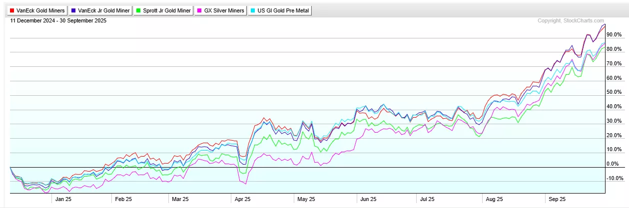 - VanEck Gold Miners ETF (GDX): UP 20.9% In September; UP 125.3% YTD