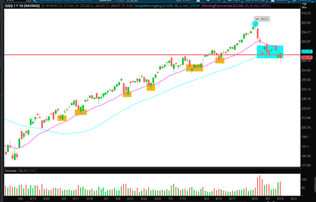 However, the growth-oriented QQQ has been under considerable pressure in recent days, declining by over 12% from its highs of September 2 and breaking below critical support levels in a short period of time.