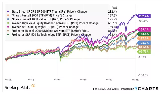 With the S&P 500 still up in price by 77% since the end of 2022, many investors probably don't care about the slight decline in 2026. Since the peak in January, SPY has dropped 2.6%. This is not fun, but it is pretty normal in the scheme of things. It is nothing like the action in early April last year! I continue to believe that investors should be taking action to reduce the risks of very high exposure to large-cap Technology stocks and the Magnificent 7.