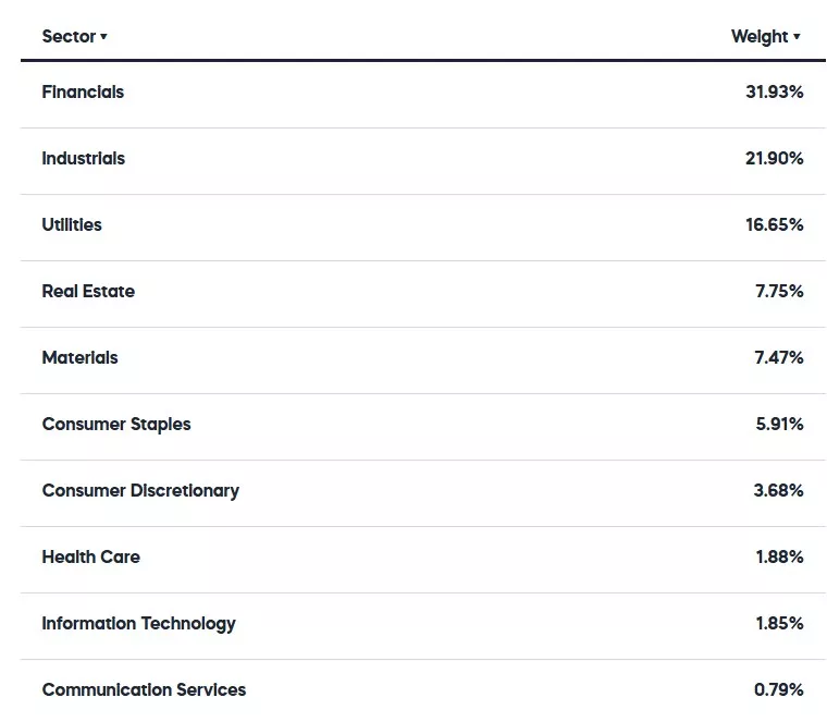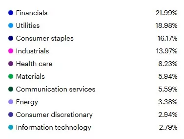 The annual rebalancing will take place in March, and things could change. I like that the ETF has big exposure to Utilities, which have pulled back from their peaks recently. I also like that the Technology exposure and Consumer Discretionary exposure sare so low. This ETF can diversify investors.