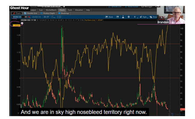 But look at the VIX 3-month to VIX ratio. It just hit 1.30 at the top of its range.