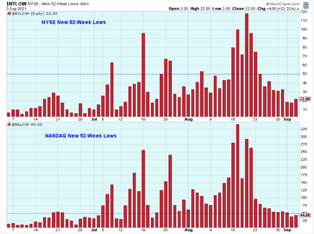 The number of new 52-week lows has settled way down. Watch this chart everyday to make sure that the general market remains healthy.