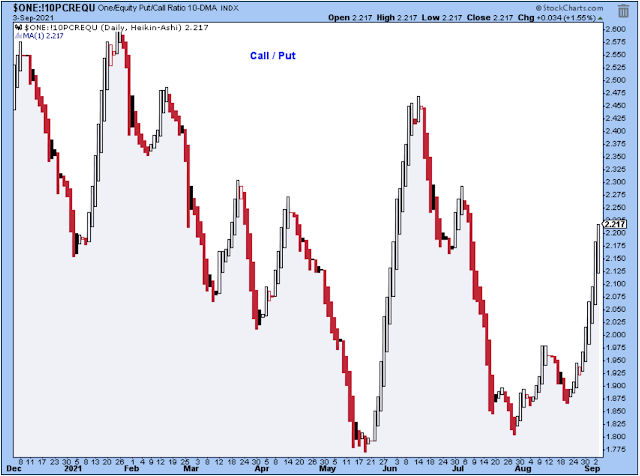 The 10-day Call/Put is in a solid uptrend. This chart is sure looking good. It is showing strength and it also looks like it has room to run higher; bullish.