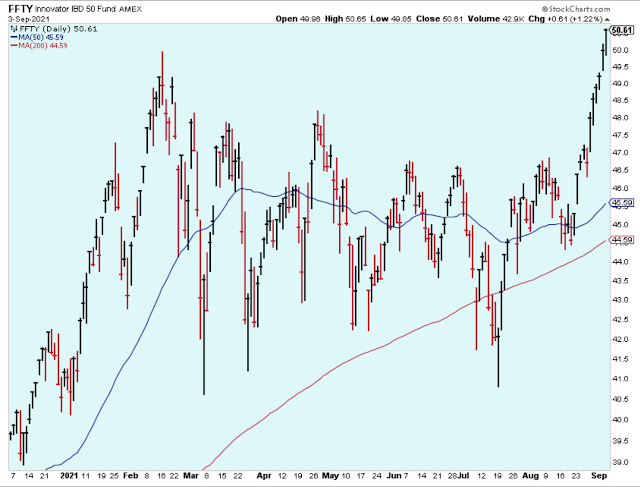 Here is a look at another small- and mid-cap ETF. This one contains 50 of the very best growth stocks, and it has been off to the races.