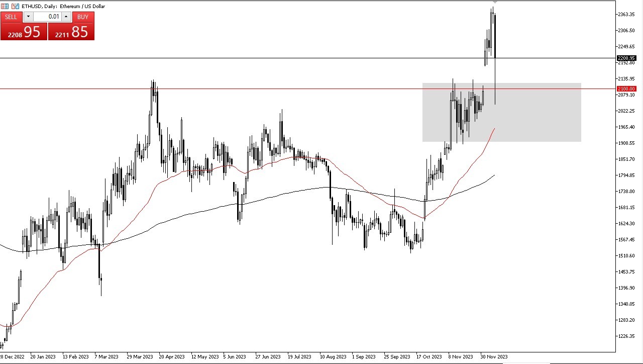 Nevertheless, cryptocurrencies persist as tradable instruments, ensuring that market participants will continue to engage with them. The ultimate strength of this asset class remains uncertain, yet for the time being, there appears to be a noteworthy bullish undercurrent. All factors considered, this suggests that the market is poised to continue its ascent, albeit with the extent of further gains still shrouded in uncertainty. In the short term, an ascent to the $2,500 level seems plausible. However, it's vital to acknowledge that a reversal beneath the $1,900 mark could potentially signal the end of the prevailing uptrend. Nonetheless, Monday's trading session, marked by a market rebound, hints at the presence of a substantial buyer base.