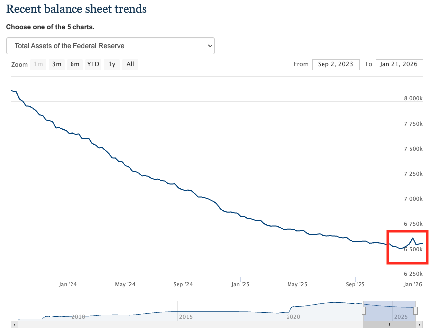 During the December meeting, the Fed announced it would relaunch quantitative easing (although it didn’t use that term). Since then, the Fed’s balance sheet has increased modestly by 48.4 million.