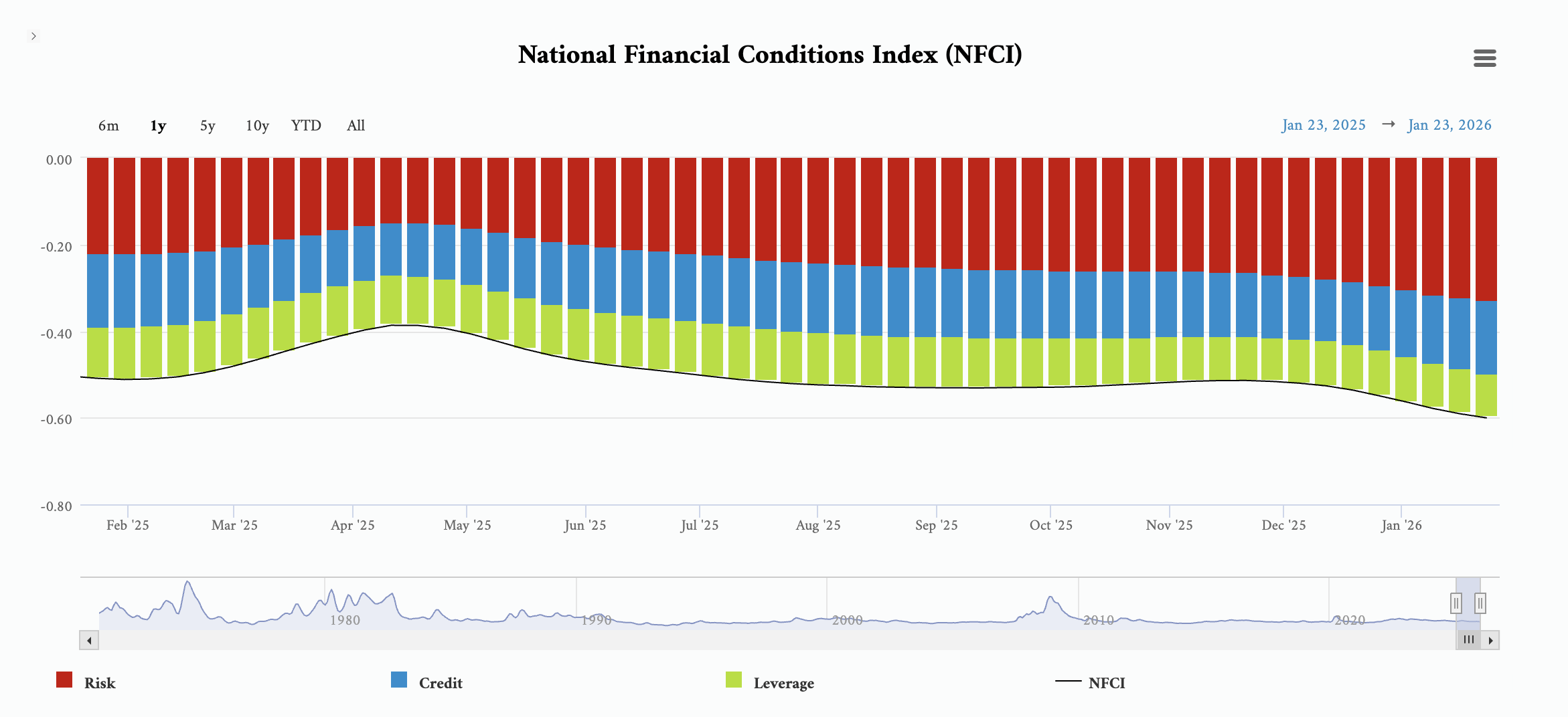 In fact, monetary policy remains loose from a historical standpoint. The Chicago Fed’s Financial Conditions Index was -0.60 as of the week of Jan. 23. A negative number indicates historically loose financial conditions. Based on the NFCI, financial conditions have become progressively looser since early December.