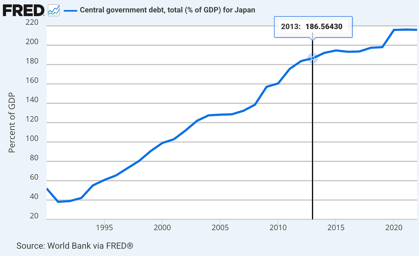 This growth in NGDP occurred despite the fact that Abe instituted a tighter fiscal policy, which greatly reduced Japanese budget deficits. Other than a single year during Covid, Japanese public debt has leveled off as a share of GDP. So much for “fiscal dominance”: