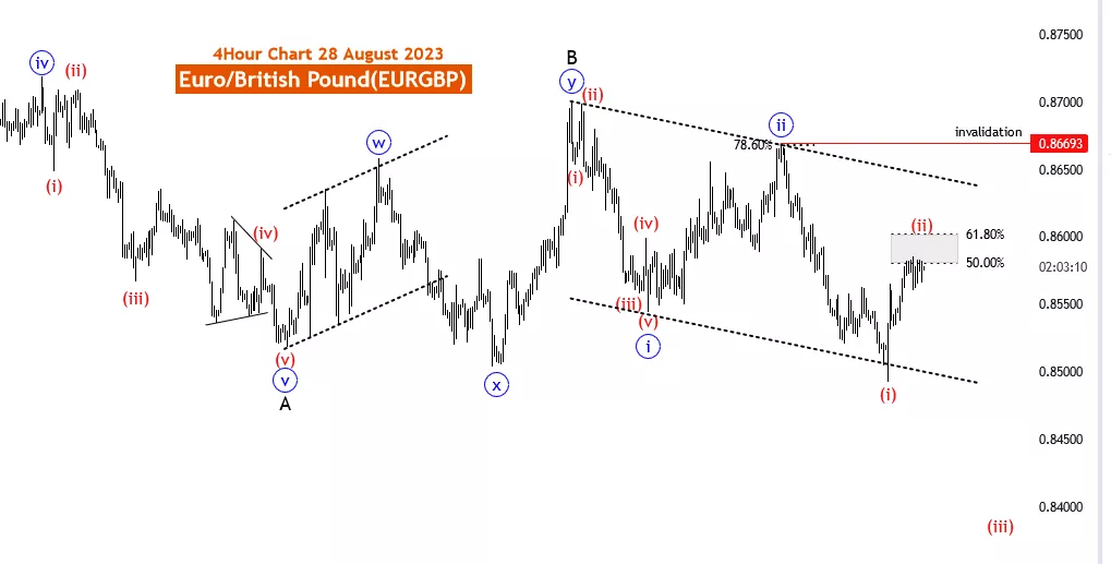 The EURGBP Elliott Wave Analysis for 28 August 23, delves into the 4-hour chart of the Euro/British Pound currency pair, providing insights into counter-trend trading within the context of a corrective wave pattern.
