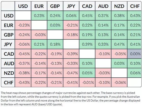 The table below shows the percentage change of Australian Dollar (AUD) against listed major currencies today. Australian Dollar was the strongest against the Swiss Franc.