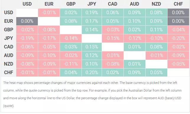 The table below shows the percentage change of Australian Dollar (AUD) against listed major currencies today. Australian Dollar was the weakest against the Euro.