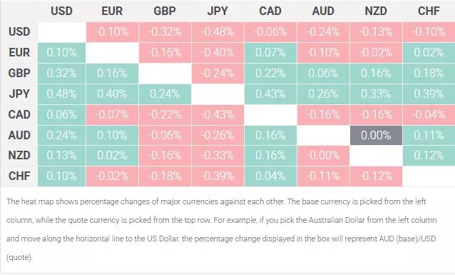 The table below shows the percentage change of Australian Dollar (AUD) against listed major currencies today. Australian Dollar was the strongest against the US Dollar.