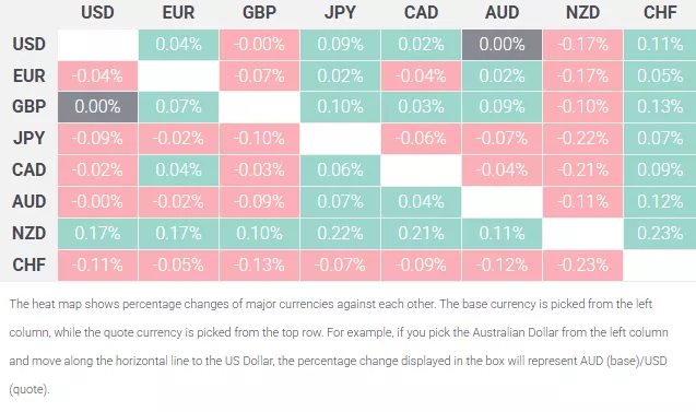 The table below shows the percentage change of Australian Dollar (AUD) against listed major currencies today. Australian Dollar was the weakest against the New Zealand Dollar.