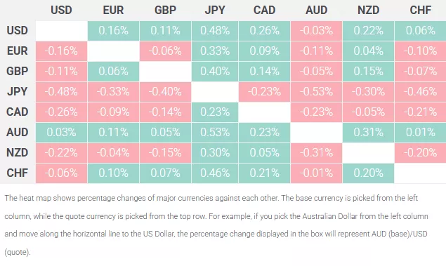 The table below shows the percentage change of Australian Dollar (AUD) against listed major currencies today. Australian Dollar was the strongest against the Japanese Yen.